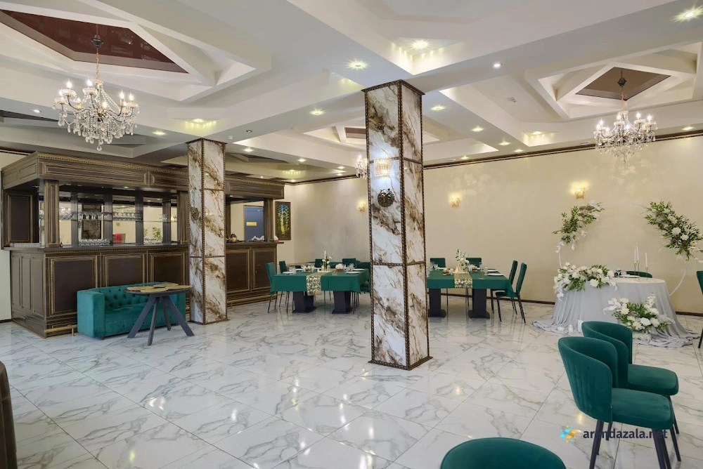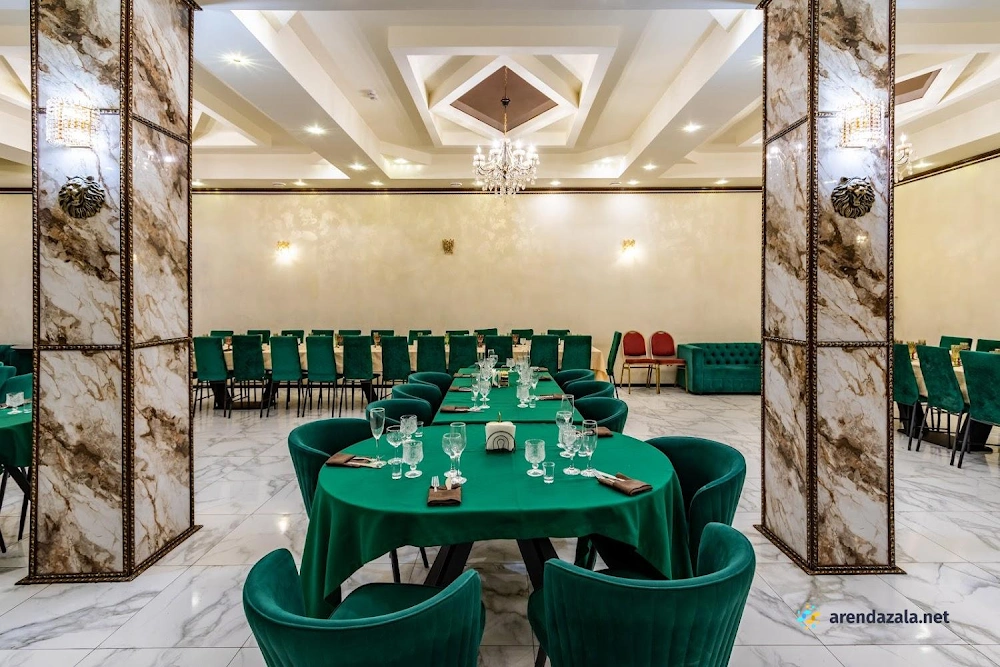В уютном банкетном зале со светлым и красиво оформленным интерьером для гостей созданы комфортные условия: идеальная чистота, оперативное обслуживание официантами и наличие зоны для выездной церемонии. Предлагаемые блюда в целом получают положительные отзывы, особенно горячие мясные блюда, однако отдельные закуски и десерты могут не удовлетворить всех гостей. В жаркую погоду система охлаждения воздуха в большом зале может работать не на полную мощность.