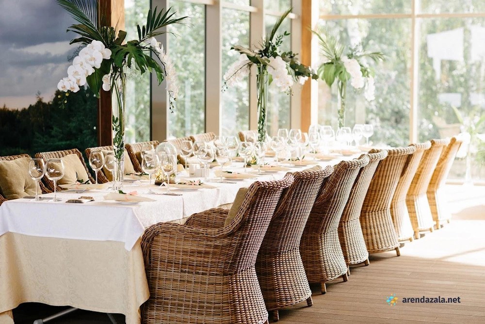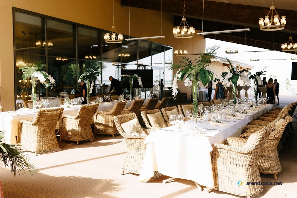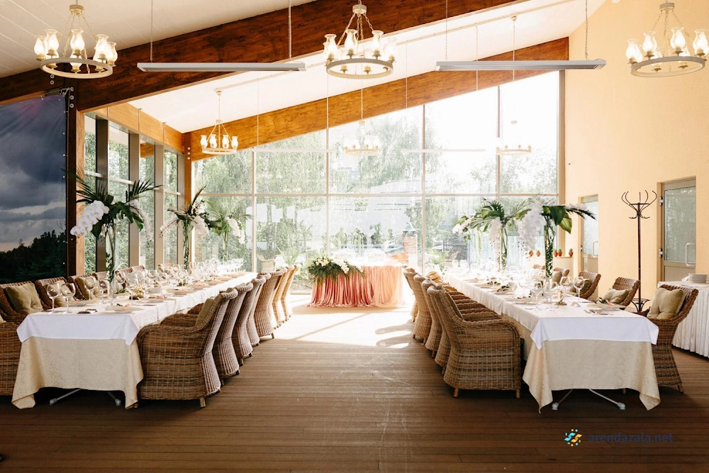 В этом уютном банкетном зале царит атмосфера торжества и романтики. Просторные залы украшены со вкусом, а многочисленные фотозоны позволяют запечатлеть самые трогательные моменты. Персонал отличается вежливостью и внимательным отношением, готов учесть все пожелания гостей. Изысканное меню порадует даже самых взыскательных гурманов разнообразием блюд и безупречным вкусом. Красивая территория с ухоженной зеленью дарит чувство уединения и позволяет насладиться торжеством в спокойной, уютной обстановке.