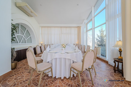 В этом уютном банкетном зале царит атмосфера торжества и романтики. Просторные залы украшены со вкусом, а многочисленные фотозоны позволяют запечатлеть самые трогательные моменты. Персонал отличается вежливостью и внимательным отношением, готов учесть все пожелания гостей. Изысканное меню порадует даже самых взыскательных гурманов разнообразием блюд и безупречным вкусом. Красивая территория с ухоженной зеленью дарит чувство уединения и позволяет насладиться торжеством в спокойной, уютной обстановке.